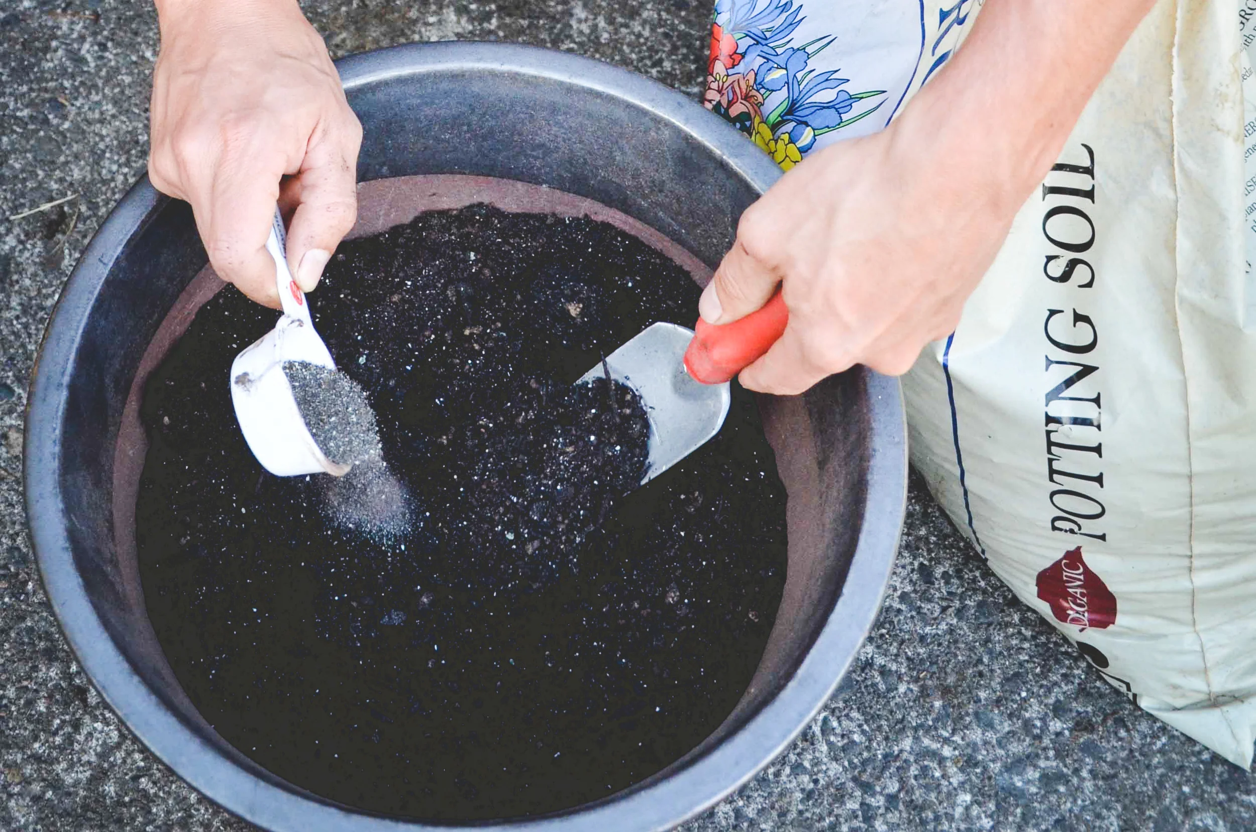 Mixing fertilizer - photo by Seattle Urban Farm Company